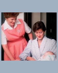 Auxiliary volunteers became an integral part of hospital life. They staffed the information desk, rolled the “goodie cart” of snacks and magazines through the halls, assisted the chaplain, managed waiting rooms, delivered mail and flowers, and even sold baby photos through the “Cradle Roll” program. Their annual Palm Sunday bake sales funded the purchase of hospital equipment through the Memorial Fund.